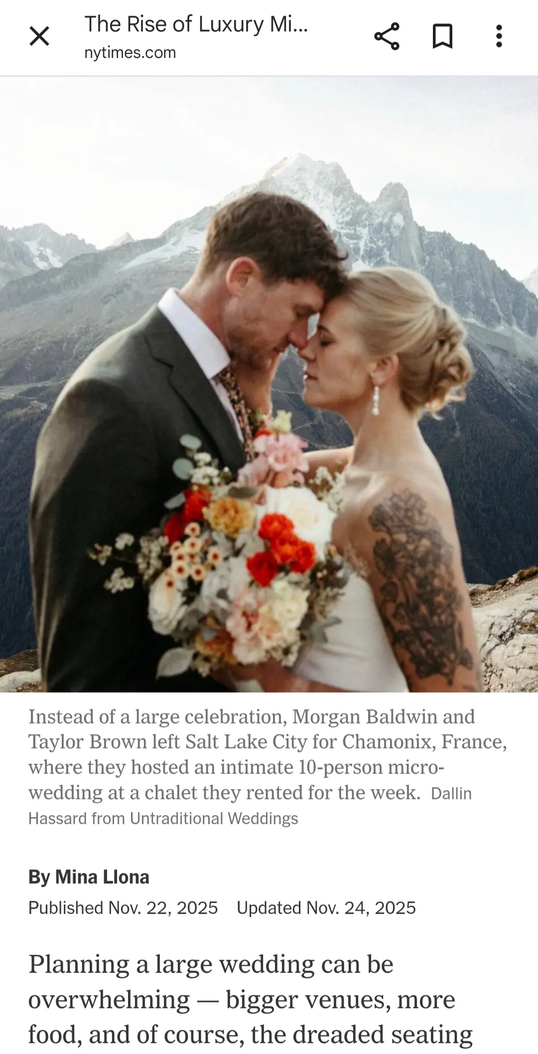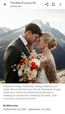 Mina Makes New York Times Debut Posted on November 28, 2025November 28, 2025 By Mina SayWhat Mina made her New York Times debut as a writer on 12/22/25 with an article about luxury micro weddings. Check out the article HERE. View this post on Instagram A post shared by Reporter Mina (@reportermina) Best Of Mina SayWhat